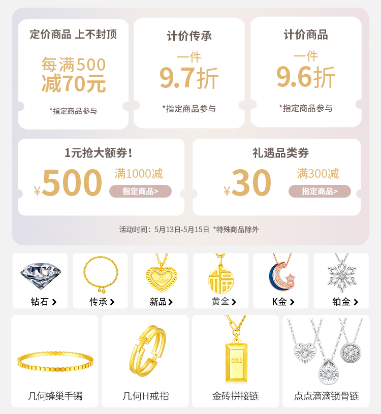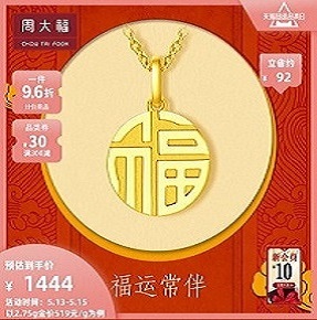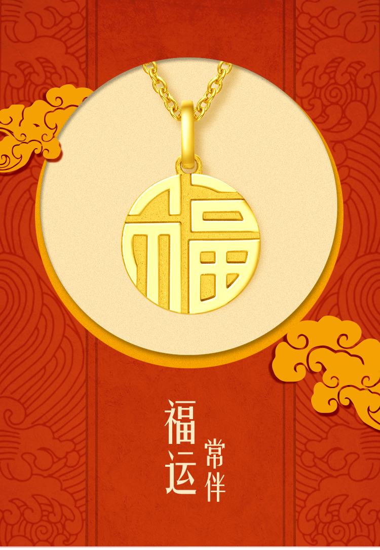 周大福珠宝国潮福字圆牌福牌足金黄金吊坠计价F221900精选送礼